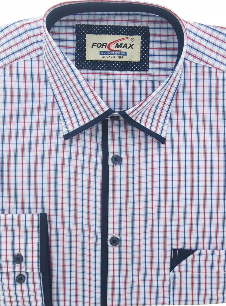 Biała koszula w drobną czerwoną kratkę długi rękaw 39 170-178