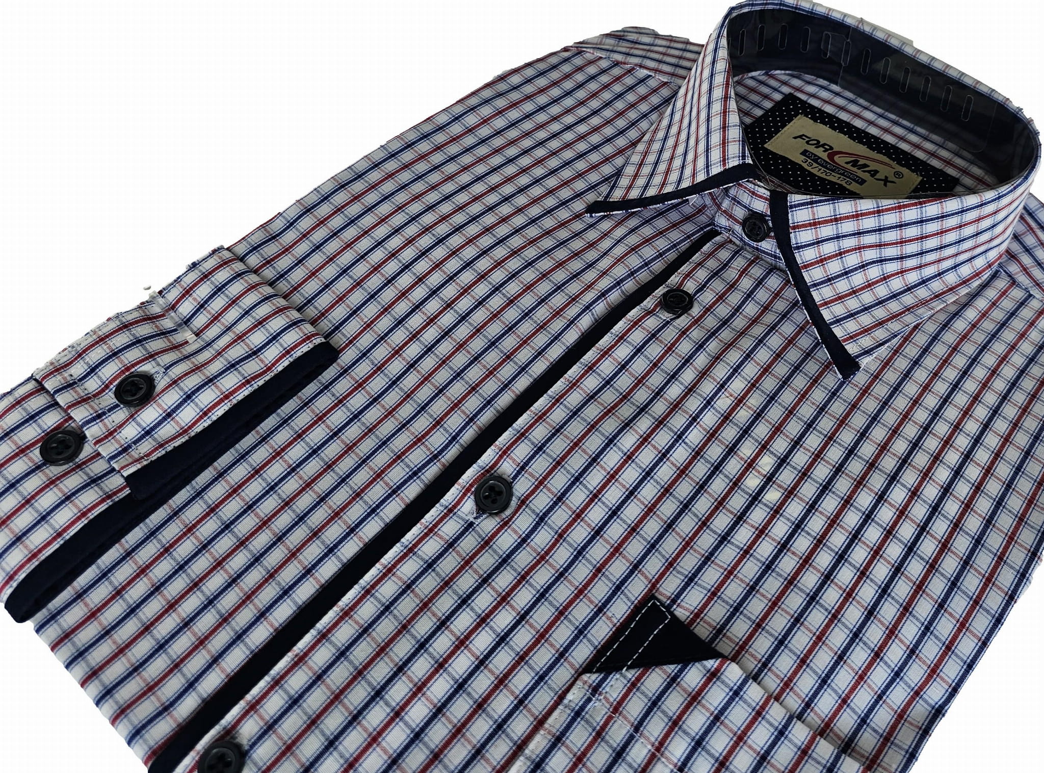 Biała koszula w drobną czerwoną kratkę długi rękaw 45 180-188