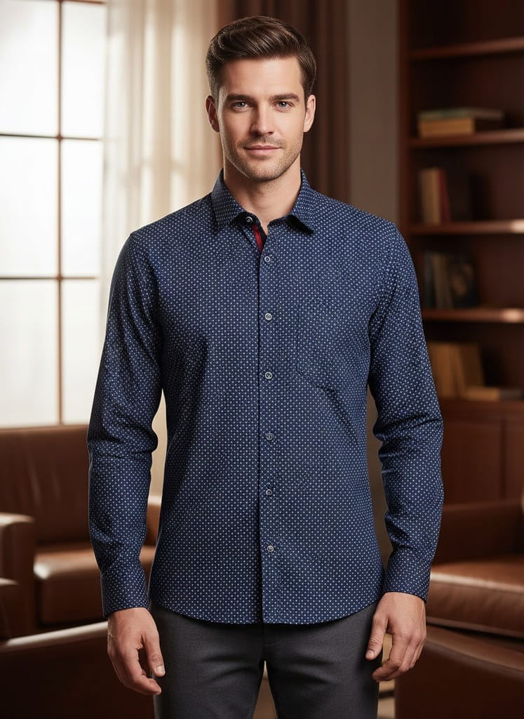 Elegancka granatowa koszula męska w subtelne wzory to doskonały wybór dla mężczyzn, którzy cenią sobie klasykę połączoną z nowoczesnym stylem. Ta koszula łączy w sobie ponadczasową biel z delikatnym, dyskretnym wzorem, który dodaje jej wyjątkowego charakteru i sprawia, że wyróżnisz się w każdej sytuacji – zarówno podczas formalnych spotkań, jak i mniej oficjalnych okazji. ✨?