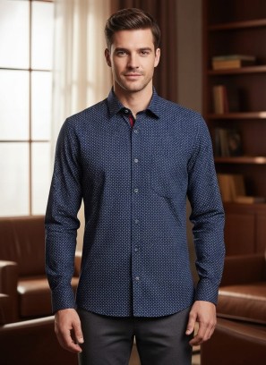 Elegancka garniturowa granatowa koszula męska z nadrukiem 45