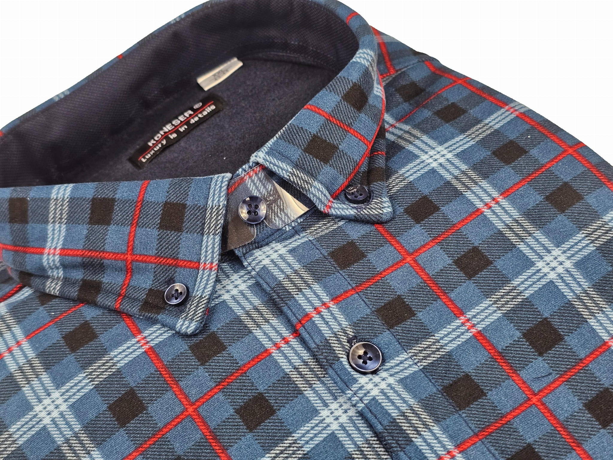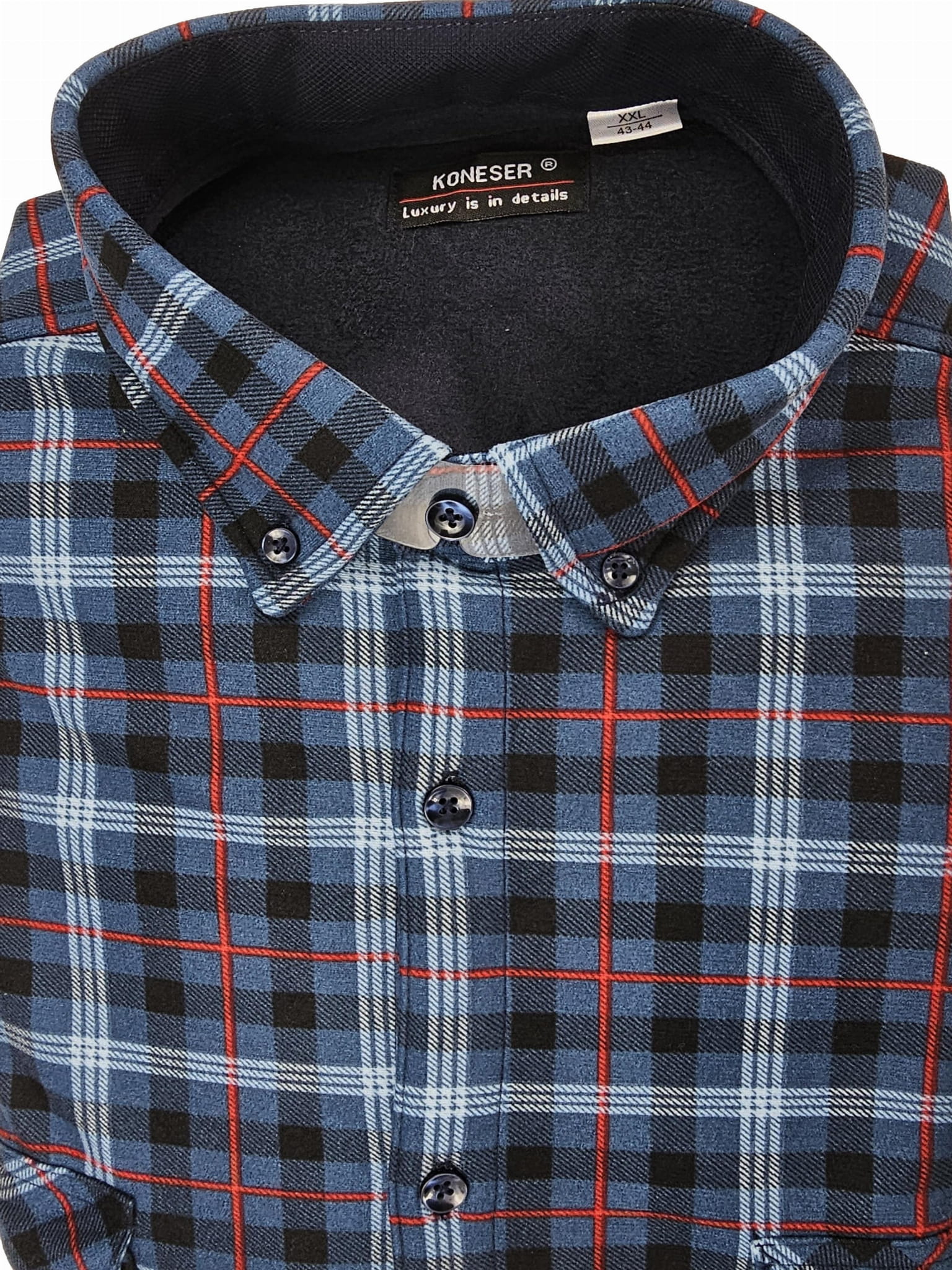 Granatowa koszula w czerwoną kratę z Grubego Polaru 2 kieszenie na guziki XL – komfort, styl i funkcjonalność na chłodniejsze dni!