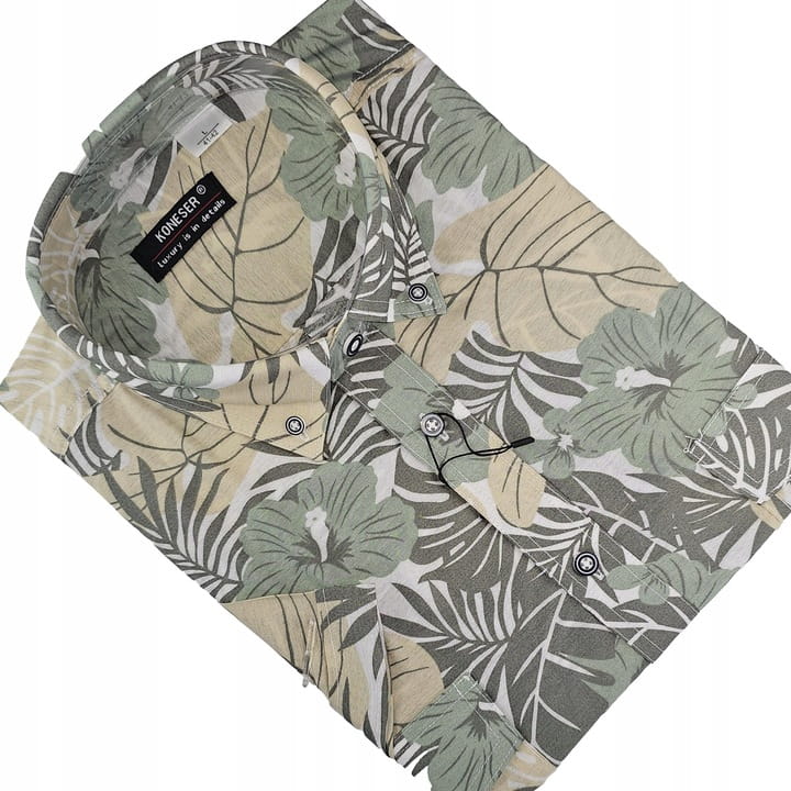 Koszula hawajska, palmy liście, zielono-beżowa 42