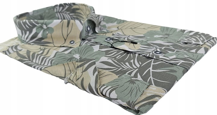Koszula hawajska, palmy liście, zielono-beżowa 43