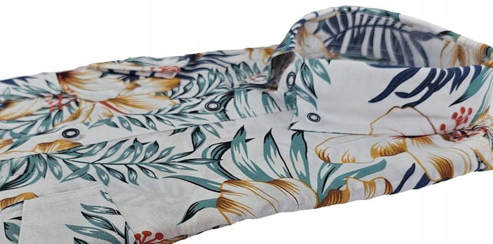 Nasza koszula męska w hawajskim stylu to idealny wybór dla każdego, kto ceni sobie wygodę, modny wygląd i letnią swobodę. Białe tło w połączeniu z zielonymi liśćmi palm oraz tropikalnym wzorem sprawia, że koszula przyciąga wzrok i doskonale wpisuje się w wakacyjne trendy. To must-have na sezon letni! Dlaczego warto wybrać tę koszulę? Uniwersalność: Świetnie sprawdzi się zarówno na plaży, podczas wakacyjnych wyjazdów, jak i na imprezach, spacerach czy codziennych wyjściach ze znajomymi. Komfort noszenia: Wykonana z wysokogatunkowej bawełny, jest niezwykle lekka i przewiewna. Materiał zapewnia komfort nawet w najbardziej upalne dni, pozwalając skórze oddychać. Luźny, modny krój: Koszula została zaprojektowana z myślą o swobodzie ruchów – nie krępuje ciała, a jednocześnie świetnie się prezentuje . Idealna zarówno do krótkich spodenek, jak i jeansów. Praktyczne zapięcie: Klasyczne zapięcie na guziki pozwala na szybkie zakładanie i zdejmowanie koszuli oraz umożliwia noszenie jej zarówno rozpiętej na t-shircie, jak i zapiętej pod szyję. Wyjątkowy prezent: To doskonały pomysł na prezent dla każdego mężczyzny, który lubi wyróżniać się z tłumu i ceni sobie oryginalny styl