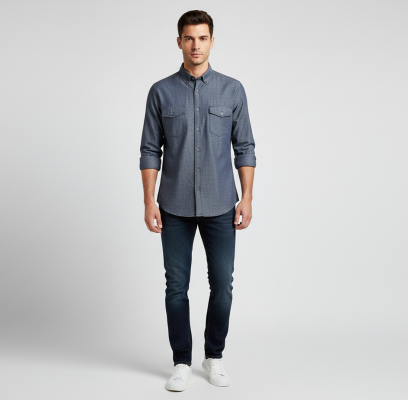 Stylowa koszula męska na długi rękaw wykonana z wysokiej jakości denimu to doskonały wybór dla mężczyzn ceniących połączenie klasyki z dodatkowym stylem. Denim to materiał trwały, wygodny i ponadczasowy, który sprawdził się zarówno w casualowych, jak i półformalnych stylizacjach. Dzięki uniwersalnemu krojowi koszula zapewnia komfort noszenia i swobodę działania przez cały dzień. ✨
