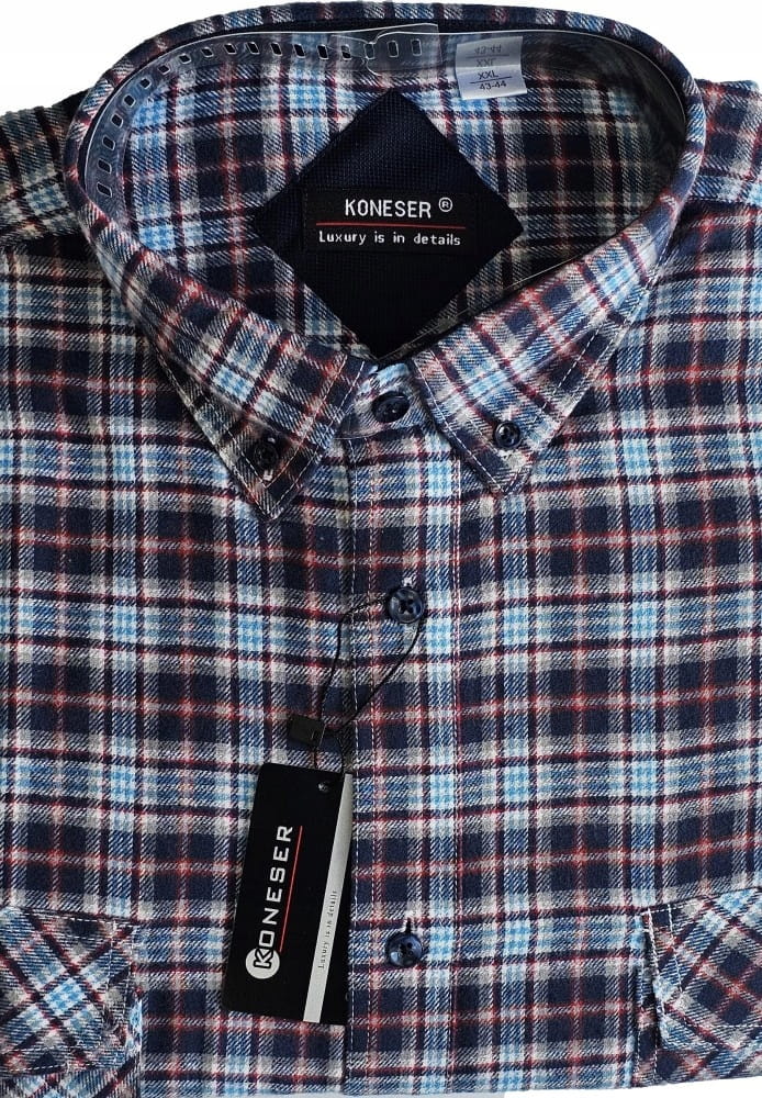 Przedstawiamy wysokiej jakości koszulę flanelową wykonaną w 100% z naturalnej bawełny, która zapewnia nie tylko miękkość i ciepło, ale także doskonałą oddychalność. To idealny wybór na jesień i zimę, kiedy komfort termiczny jest szczególnie ważny. Dzięki flaneli koszula jest przyjemna w dotyku i zapewnia wygodę nawet podczas długiego noszenia. Koszula została zaprojektowana z myślą o praktyczności i stylu. Posiada dwie funkcjonalne kieszenie na piersi, zapinane na patki, które dodają klasycznego charakteru i umożliwiają wygodne przechowywanie drobnych przedmiotów, takich jak telefon czy długopis. Solidne guziki oraz staranne wykończenie szwów gwarantują trwałość i odporność na codzienne użytkowanie, dzięki czemu koszula posłuży Ci przez wiele sezonów. Krój regular zapewnia komfort i swobodę ruchów, dopasowując się do różnych sylwetek. To uniwersalny fason, który sprawdzi się zarówno w casualowych, jak i bardziej formalnych stylizacjach. Niezależnie od okazji, ta koszula będzie doskonałym wyborem, łącząc wygodę z modnym wyglądem. Dostępna jest w szerokiej gamie rozmiarów od M do XXXL, co pozwala każdemu znaleźć idealne dopasowanie.