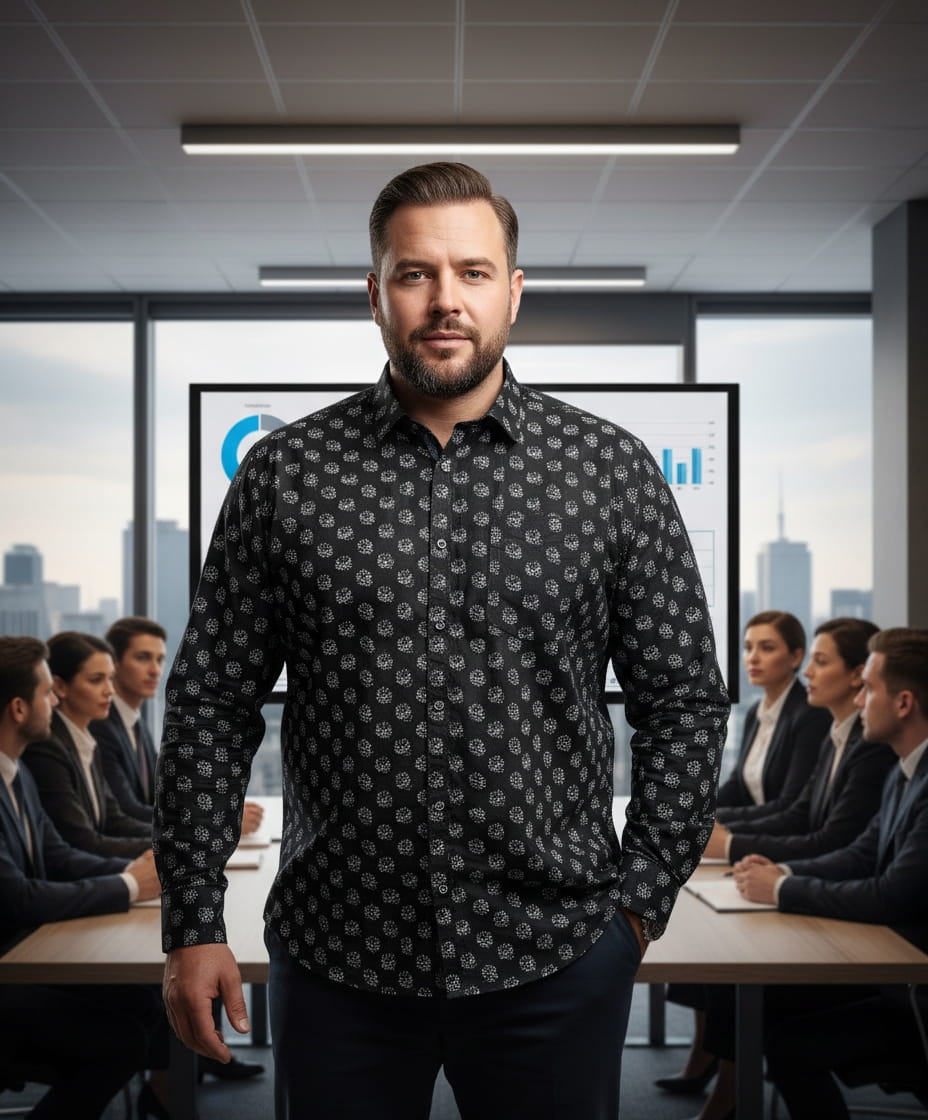 Czarna Nowoczesna koszula slim z wzorem to idealny wybór dla mężczyzn, którzy cenią sobie styl, wygodę i jakość. Dzięki różnorodności wzorów i kolorów, każdy znajdzie coś dla siebie, co pozwoli na wyrażenie indywidualnego stylu. Niezależnie od okazji, koszula slim z wzorem doda Ci pewności siebie i elegancji. Inwestując w taką koszulę, zyskujesz nie tylko modny element garderoby, ale także produkt, który posłuży Ci przez długi czas. Wybierz koszulę, która najlepiej odzwierciedla Twój styl i ciesz się modą na co dzień!