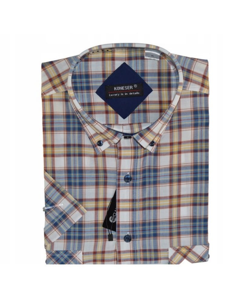 Elegancka Beżowa Bawełniana Koszula Męska w Kratkę– Klasyka Męskiej Garderoby