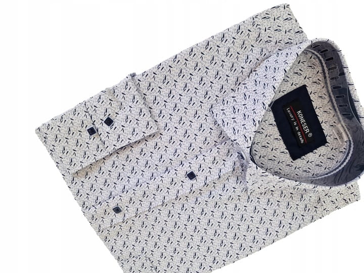 Koszula charakteryzuje się klasycznym krojem, który dobrze leży na każdej sylwetce. Roślinne wzory dodają jej nowoczesnego charakteru, co pozwala na łatwe zestawienie z różnymi elementami garderoby. Koszula pasuje zarówno do spodni chinos, jak i jeansów, co czyni ją wszechstronnym elementem męskiej mody.