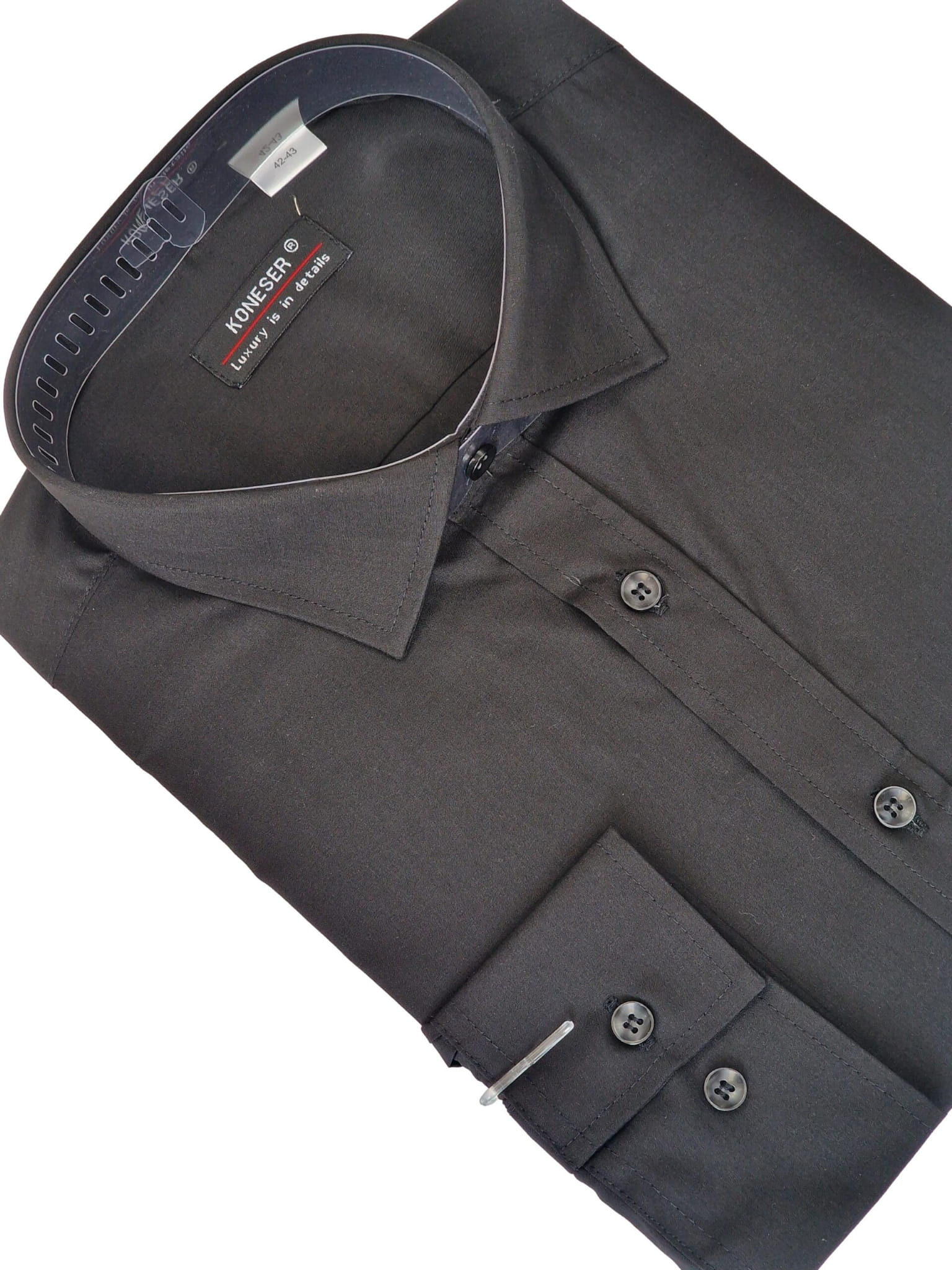 Elegancka Gładka czarna koszula elegancja i styl 44