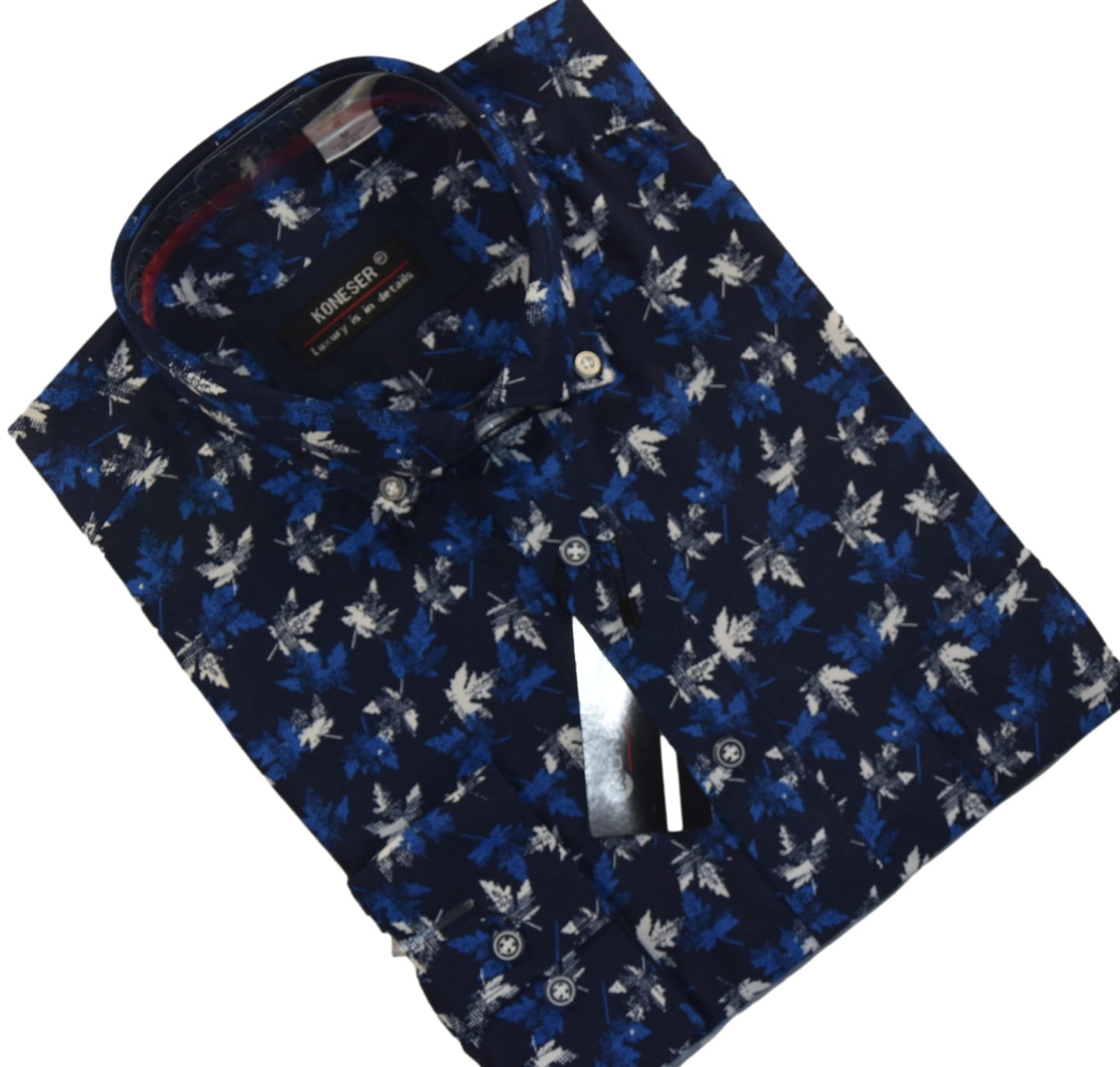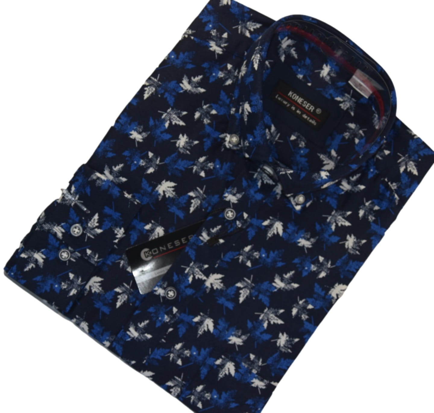 Koszula charakteryzuje się klasycznym krojem, który dobrze leży na każdej sylwetce. Roślinne wzory dodają jej nowoczesnego charakteru, co pozwala na łatwe zestawienie z różnymi elementami garderoby. Koszula pasuje zarówno do spodni chinos, jak i jeansów, co czyni ją wszechstronnym elementem męskiej mody.