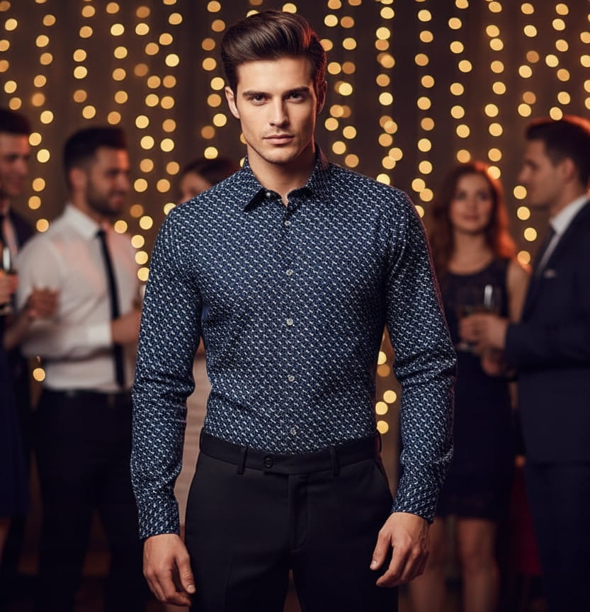 Granatowa Koszula Męska w Wzory – Ożyw Swoją Garderobę