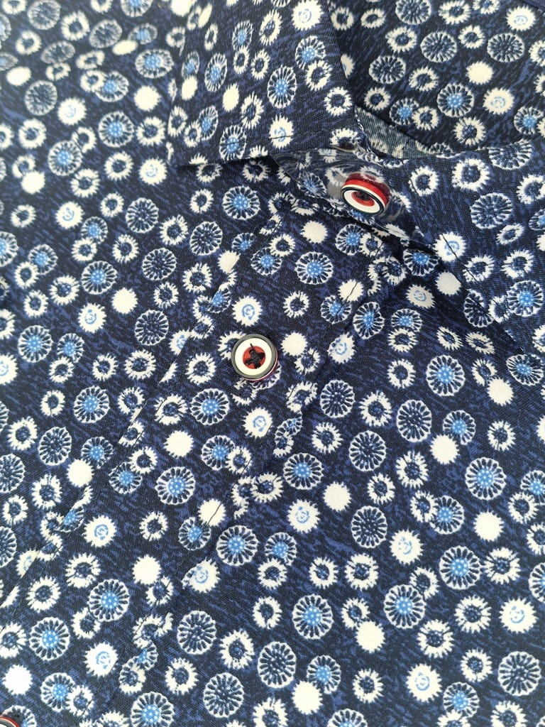 Koszula charakteryzuje się klasycznym krojem, który dobrze leży na każdej sylwetce. Roślinne wzory dodają jej nowoczesnego charakteru, co pozwala na łatwe zestawienie z różnymi elementami garderoby. Koszula pasuje zarówno do spodni chinos, jak i jeansów, co czyni ją wszechstronnym elementem męskiej mody.