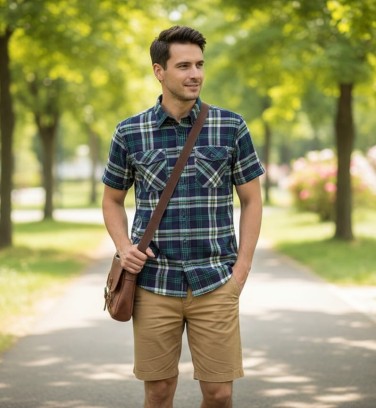Granatowa Koszula w Zieloną Kratkę – Idealne Połączenie Stylu i Komfortu