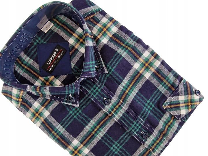 Granatowa Koszula w Zieloną Kratę -Dbałość o Detale
