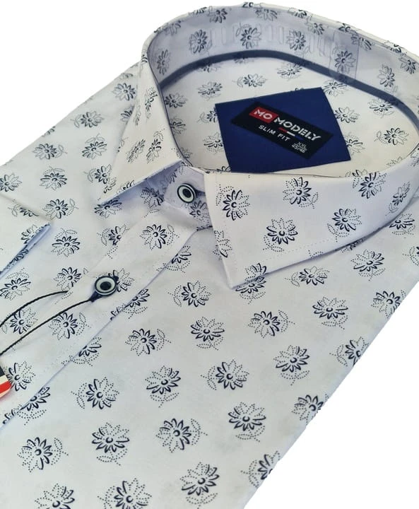 Koszula slim biała z kwiatowym wzorem – Elegancja i Styl w Jednym