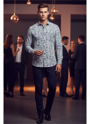 Elegancka Komfortowa szara koszula slim we wzorek gazetowy to must-have w każdej garderobie. Idealnie komponują się z eleganckimi spodniami oraz jeansami, co czyni je wszechstronnym wyborem. Bez względu na to, czy idziesz na formalne spotkanie, czy na casualowy wypad z przyjaciółmi, nasze koszule dodadzą Ci pewności siebie i szyku. Dzięki temu, zawsze będziesz na czasie.