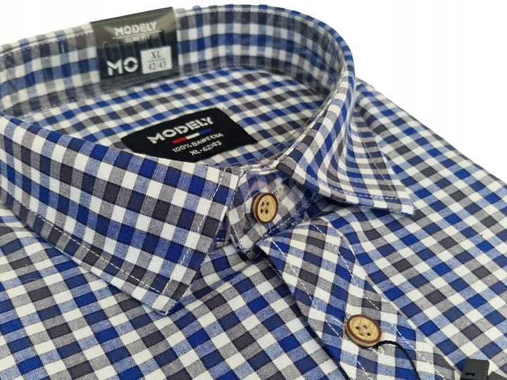 Wzór łączy klasyczną czerń z głębokim granatem, nadając koszuli uniwersalny charakter. Dzięki temu łatwo dopasujesz ją do casualowych i formalnych stylizacji. Możesz zestawić ją z jeansami i sneakersami na spotkanie z przyjaciółmi lub z eleganckimi spodniami i półbutami na oficjalne wyjścia. Koszula sprawdzi się również w biurze, dodając profesjonalizmu i klasy.