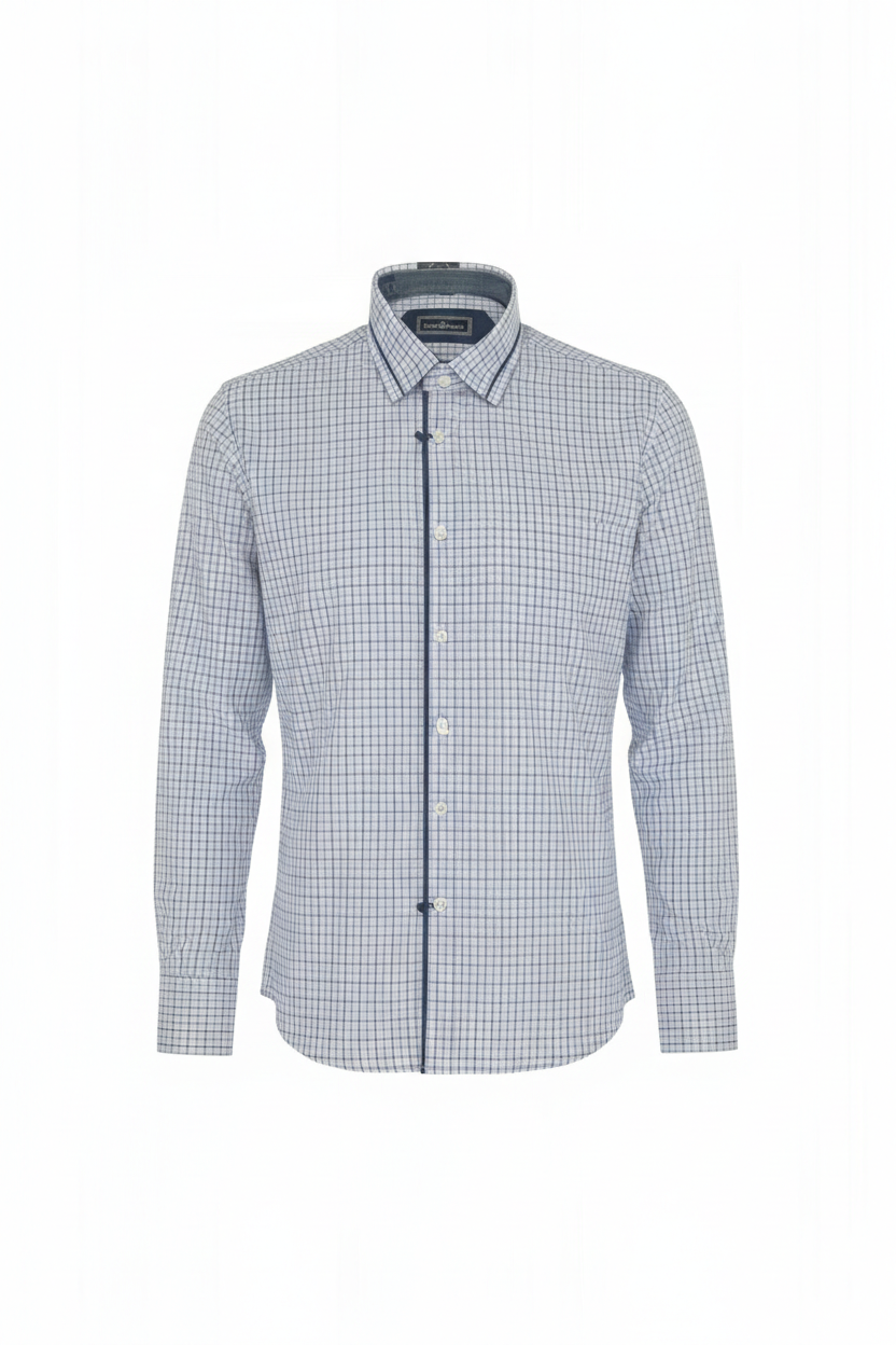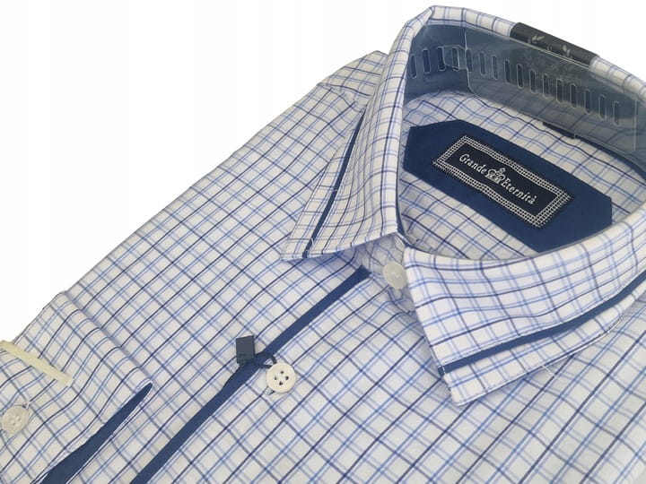Modna Eleganckia męska koszula w kratkę Biała Koszula w Niebieską Kratkę 38