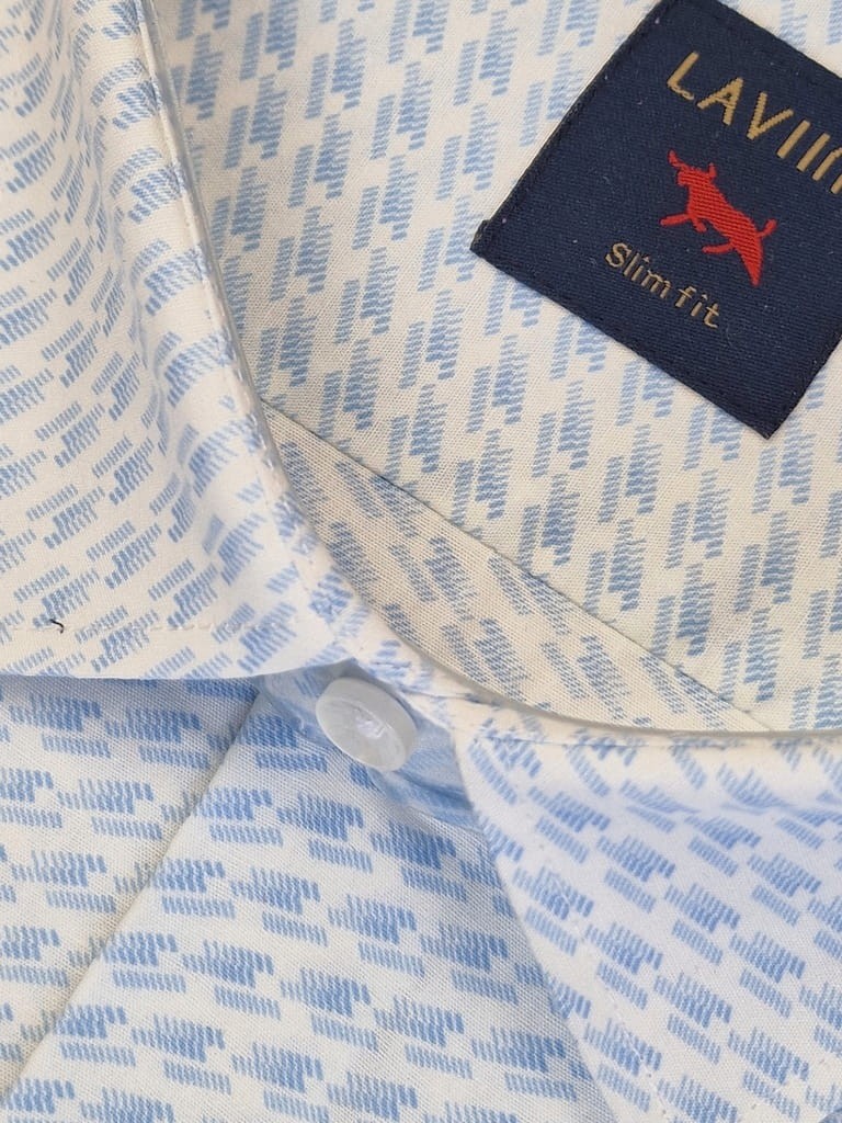 Modna Stylowa biała koszula męska slim niebieski deseń 40