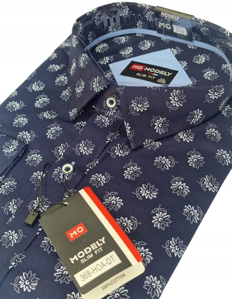 Stylowa Wygodna granatowa koszula slim z wzorem 46